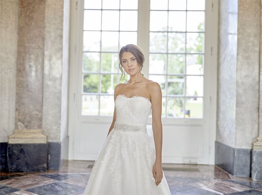 Traumhafte neuwertige Hochzeitskleider im Hochzeit Outlet von Gina's Sposa - aus der letzten Saison zu stark reduzierten Preisen.