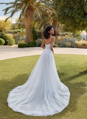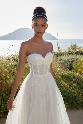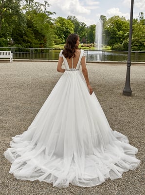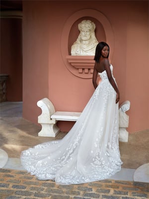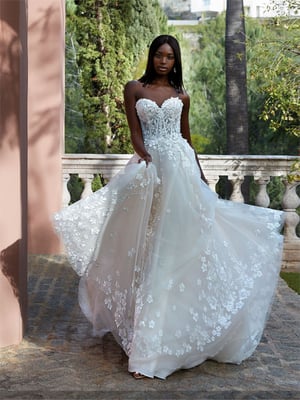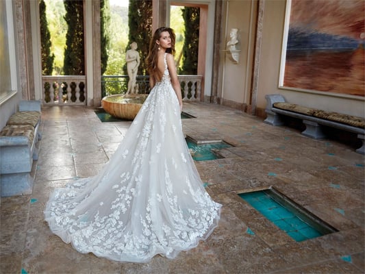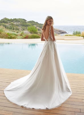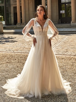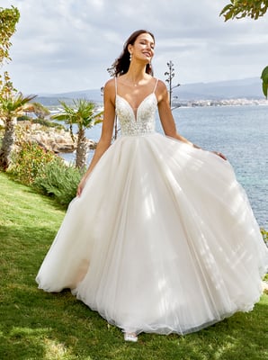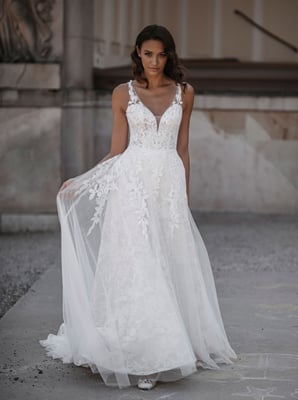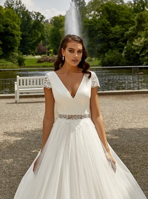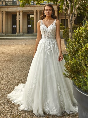 Der Klassiker unter den Brautkleidern ist die so genannte A-Linie. Die Schnittform der A-Linie bezeichnet sich durch eine nach unten hin verbreiternde Silhouette – also ähnlich wie der